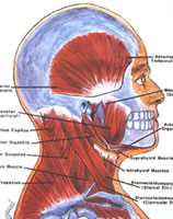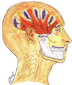 特に顎を後ろの方へ引っ張る側頭筋に緊張が起ってきます。